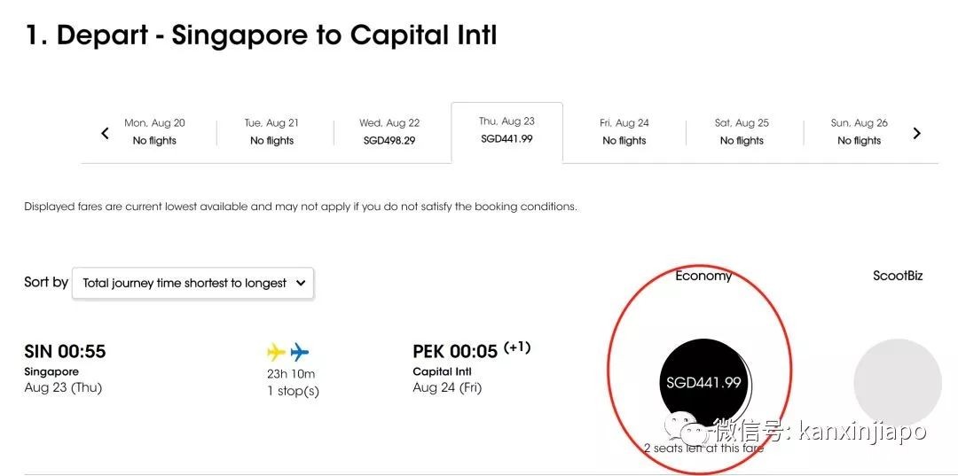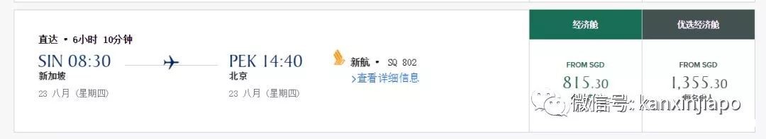 酷航作为新加坡航空公司旗下的子公司,一直以其廉价的机票著称。有多便宜呢??来来来,没有对比,就没有伤害。以8月23号,从新加坡飞往北京为例,酷航与新航的机票价格,便宜了将近一半!