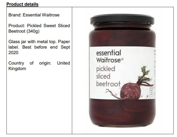 5月,一款从英国进口的Essential Waitrose腌渍甜菜根产品因可能含有玻璃碎片,进口商被下令将产品召回。