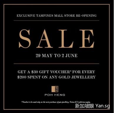 珠宝店新店开张!购买任何金饰满$200,即可获得$30代金券!
