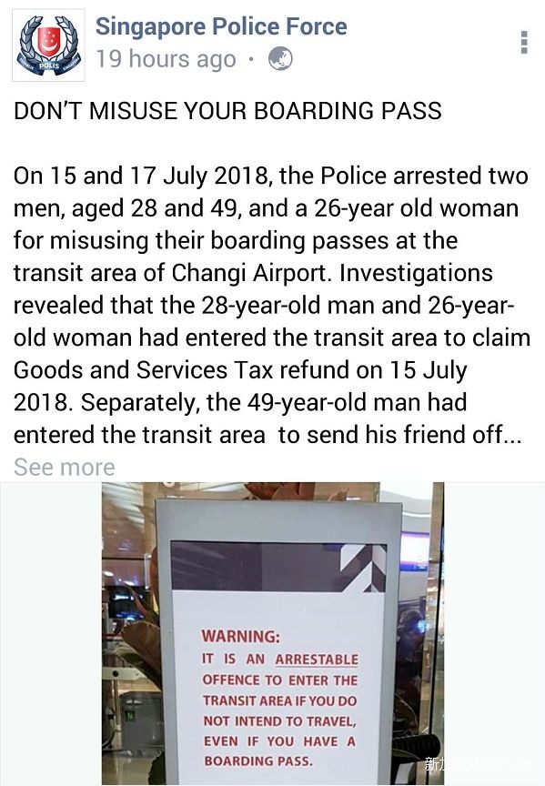 真不开玩笑,别滥用登机牌,又有人在樟宜机场被抓了