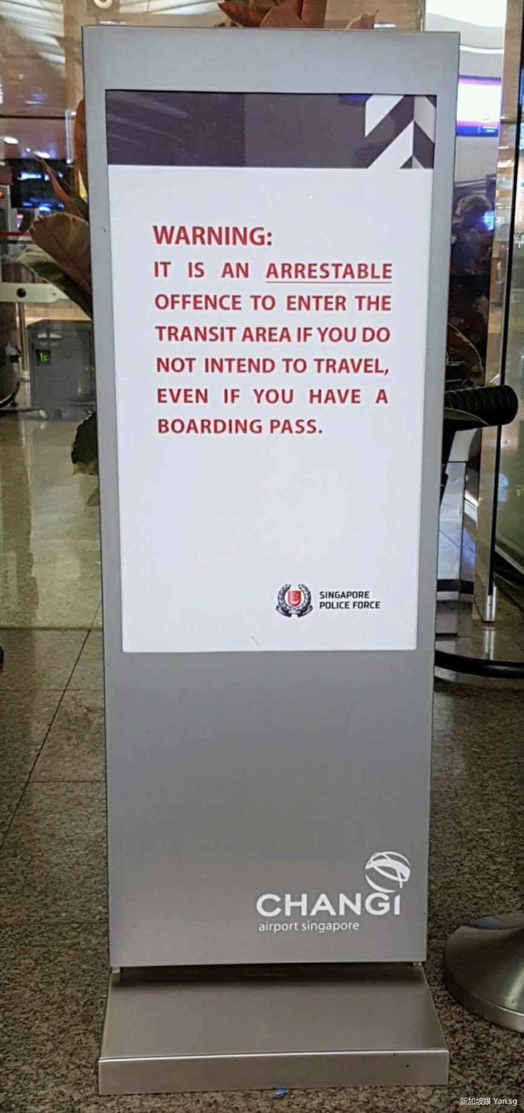 樟宜机场的离境厅是被视为保护区的,根据新加坡保护区和保护地法令,只有那些需要飞往其他目的地的乘客才能进入。