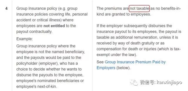 第二,政府鼓励,并且可以减免缴税额度。终身健保独立检讨委员会鼓励本地雇主向员工提供可转移保险,比如让员工保险与终身健保相结合。员工也无需自己购买额外保单,即使离职后仍可受保。但这项决议还在审议之中,何时正式颁布尚未可知。政府有意推动此举措可观地提升了雇主提供更丰富员工保障的意项。并且如果公司为自己员工提供公司保险,可以享受相应的减税政策。以下截图来自税务局官网: