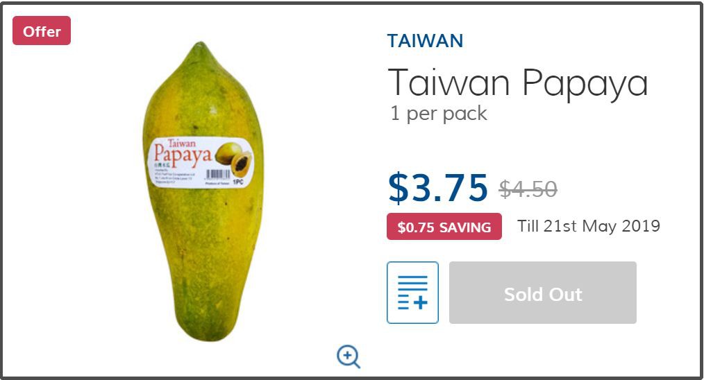 原价$4.50的台湾木瓜降到了$3.75,只比马来西亚木瓜贵了$0.50。相比之下,大家似乎更愿意多花几毛钱改买台湾木瓜啊,促销还没结束就被一抢而空。