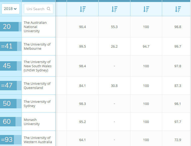 ▲QS世界大学排行榜,排名前100的澳洲大学