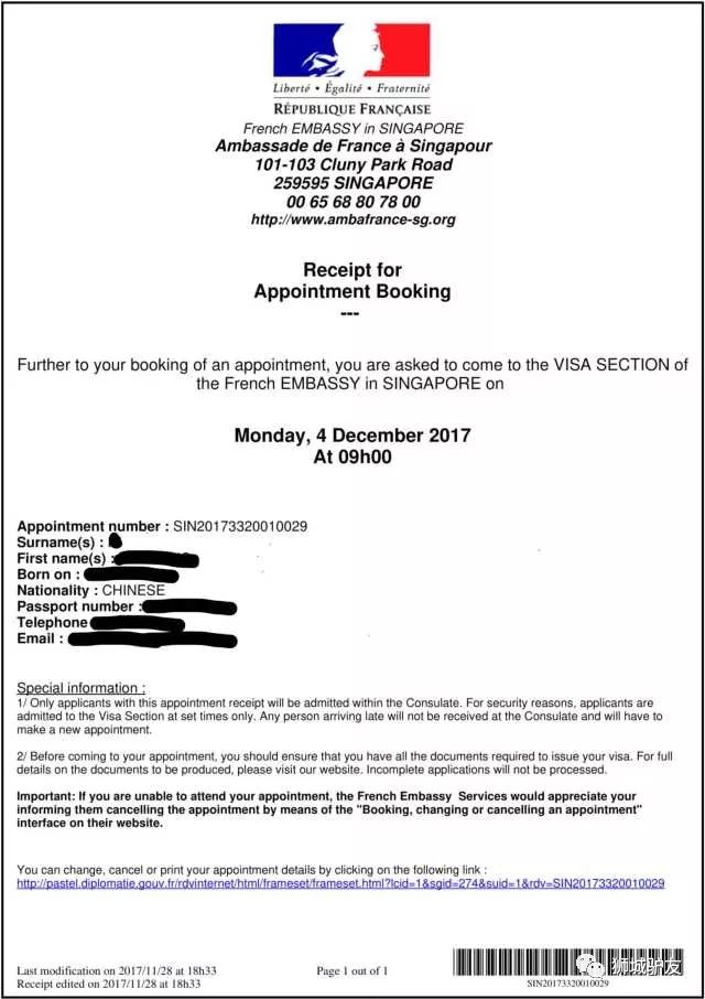 成功激活后你需要修改你的密码,密码必须含有一位大写字母和数字,至少十个字符。然后你需要设置一个密码保护问题,可以选择系统提供的,也可以自己输入问题。提交网上申请成功登录后,你就需要填写基本个人资料并预约一个时间去大使馆提交证明材料。成功预约后你会收到一份确认邮件,里面会附有一个预约回执,记得一定要将这张回执打印出来,并在约定的时间,和其他资料一并带去大使馆。邮件中也会附有一个链接,以供你取消或修改预约时间。