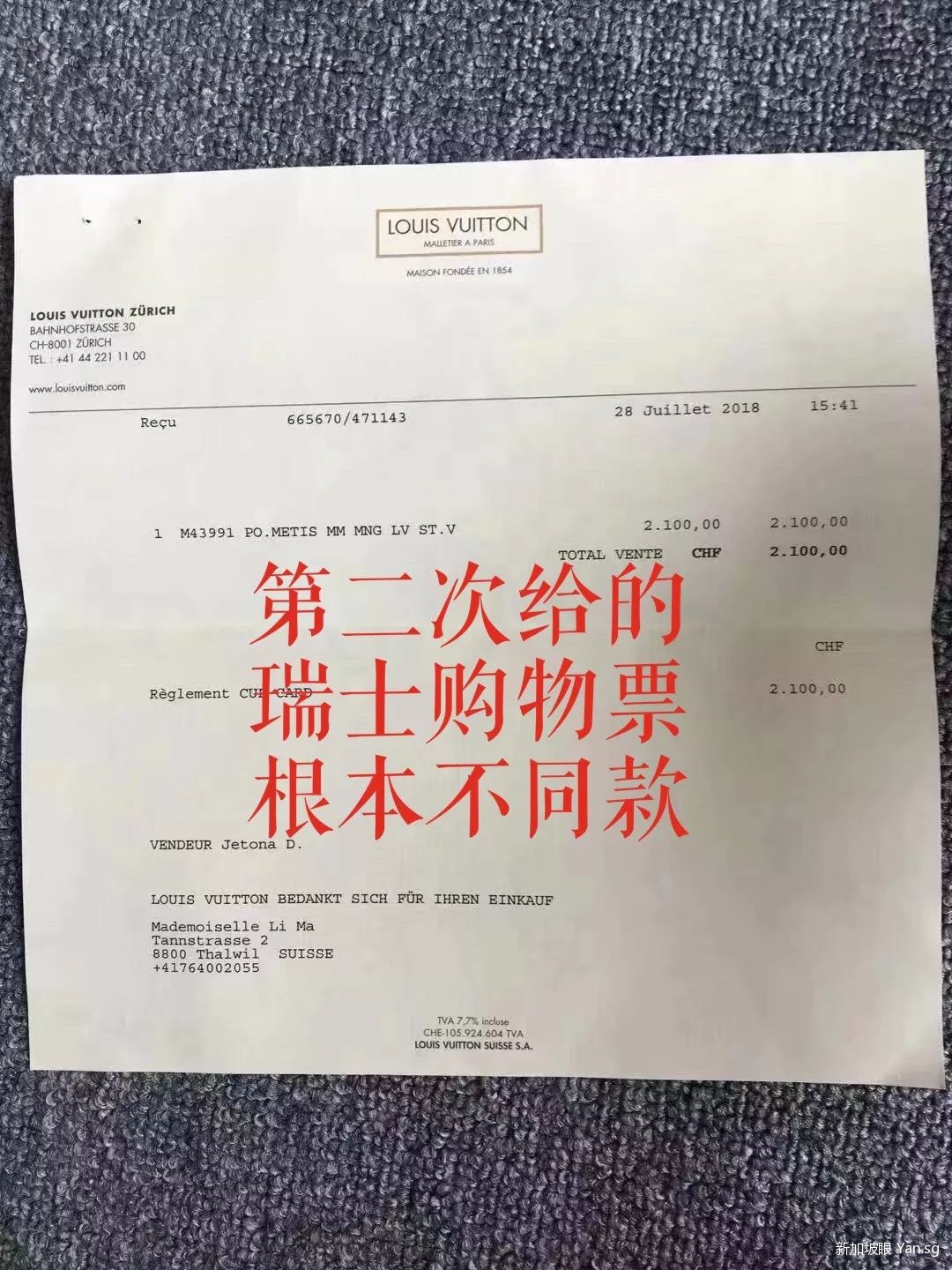 因为是朋友介绍的,见她代购又做的很好,新加坡很多朋友都知道她,现在回国发展,还开了实体店,所以很信任,没有怀疑过什么。直到今年2月,大年初二那天,LV的包锁扣掉了,完全不能背了。