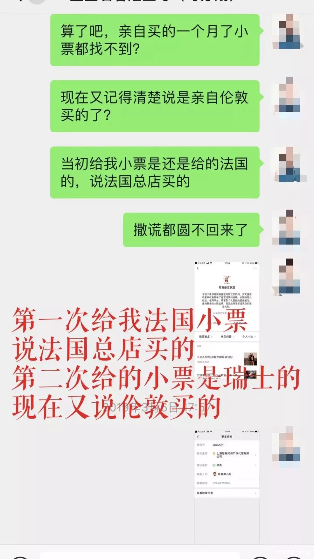 两万块钱买了假货,我自认倒霉,虽然她现在回国了,但是她在新加坡很多年,很多新加坡客人,在此提醒大家,以免更多人受骗。