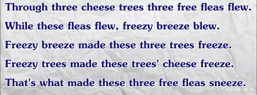 说“三棵树”听起来就是萌萌哒“tree trees”(树树)~据说下面这个绕口令会让新加坡人抓狂: