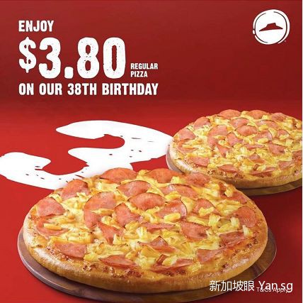 必胜客庆祝38年生日,只要购买任何主食,即可以$3.80享有披萨一个!只要在点餐时祝愿必胜客“Happy Birthday Pizza Hut”,或者线上购买时,输入促销码:YAY380PIZZA,即可享有优惠~