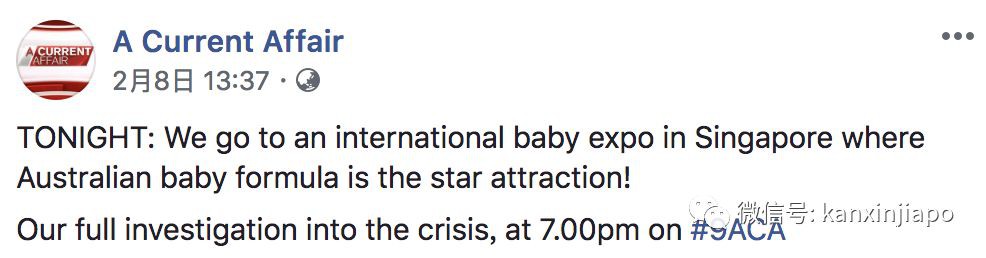 2月8日,澳洲节目A Current Affair发布视频,实名指责新加坡妈妈们疯狂抢购奶粉,导致本地人买不到心仪产品!