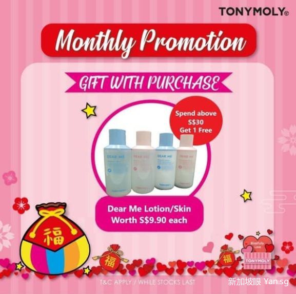消费满$30即可获得价值$9.90的130ml Tonymoly Dear Me Lotion/Skin