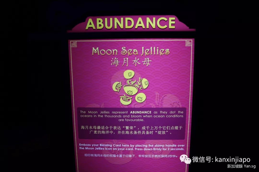 一路走下来,我们还发现海洋馆里每个区域都会展示一个标志性的海洋生物,每种生物都代表一个祝福,有长寿、财富、丰裕等等……