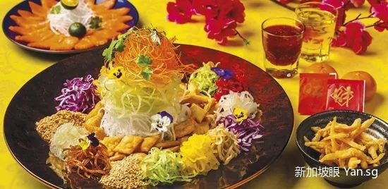 在新加坡,过年聚餐捞鱼生绝对是重头戏。风水廷今年的“风生水起·遍地黄金蜜糖熏三文鱼生”一片火红,看着特别喜庆。