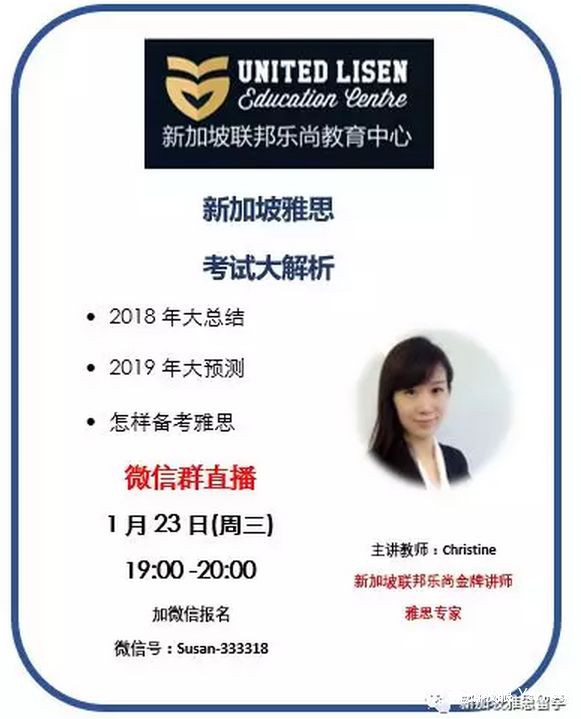 无论你是初次接触雅思考试,还是已经备考了一段时间,了解雅思的最新趋势是非常重要的。联邦乐尚雅思将通过自己的公益微信授课平台,举行免费公开课向大家普及雅思考试的方向和趋势,以及备考经验。