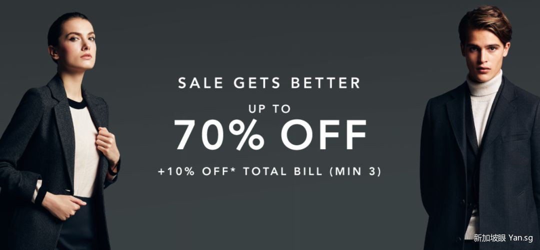男装、女装,全都低至3折!购买三件以上,还有额外10%优惠!