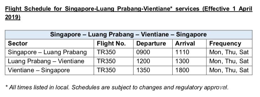 酷航将从4月1日起开通飞往老挝的TR350航线!该航班将分别在每周一、四、六飞出,由新加坡飞往琅勃拉邦,在老挝境内中转万象后,从万象飞回新加坡(详情请看下图),1月22日前还有单程票88新币的特别优惠哦~