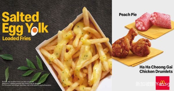 麦当劳推出了一大波新品!咸蛋黄薯条、水蜜桃派、班兰冰淇淋、虾酱炸鸡腿……..