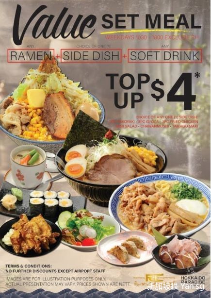 购买任何拉面,加$4即可获得配菜和饮料~