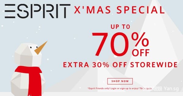 圣诞促销,全场低至7折!线上购物可享低至3折优惠!
