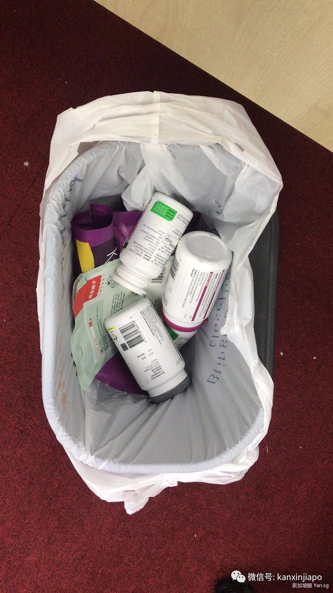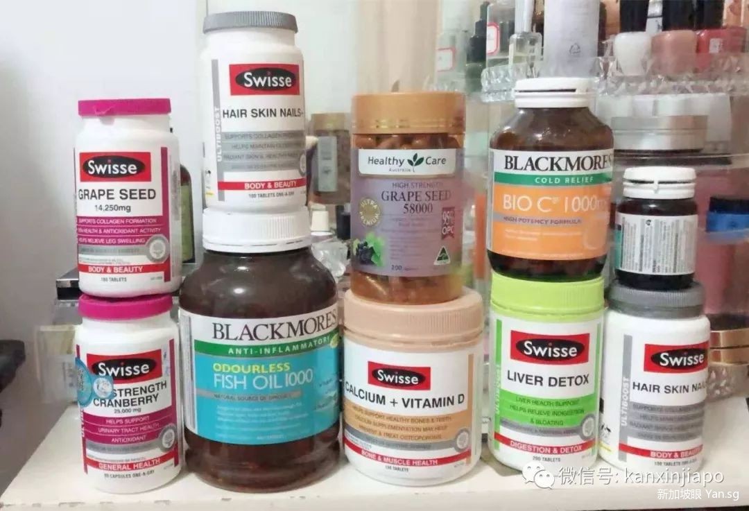 还有网友表示,她有这几瓶维生素类型的保健品,从中国带到了新加坡,从家里带到了办公室,整整跟了她2年。不过它们仍然光荣牺牲掉,因为在拍照的时候已经发现都过期了。