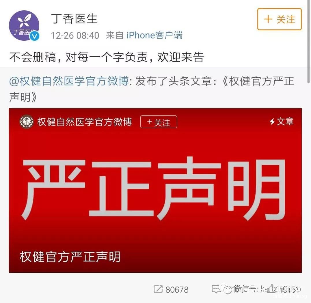 于是便出现了热搜上的权健要求丁香医生道歉,然而丁香医生也很耿直:欢迎来告!