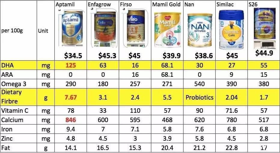 我们还为大家做了小调查,详细记录和对比了价格,营养成分,爱他美的DHA和益生元是市场上占比最高的呢