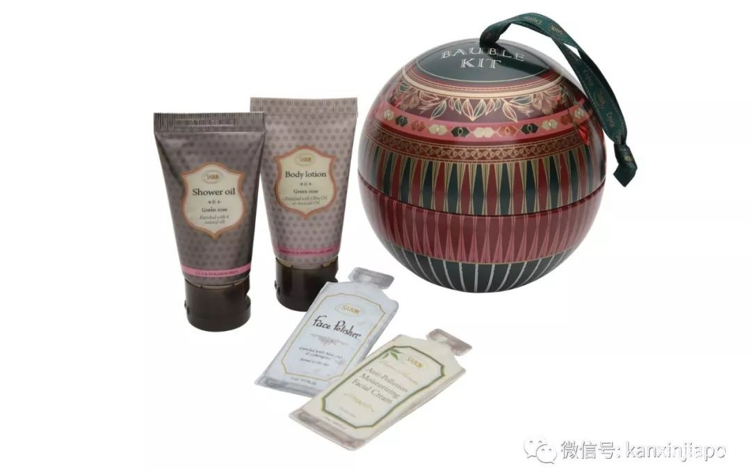 这个像圣诞树挂件一样的球球实在太可爱啦!有绿色玫瑰香薰沐浴油和润肤露,还有面霜和面部磨砂的小样。20多块的价钱送朋友再合适不过了。如果不舍得一整个都送同事、同学,可以把漂亮的球球留下,护肤小样在旅行时用。