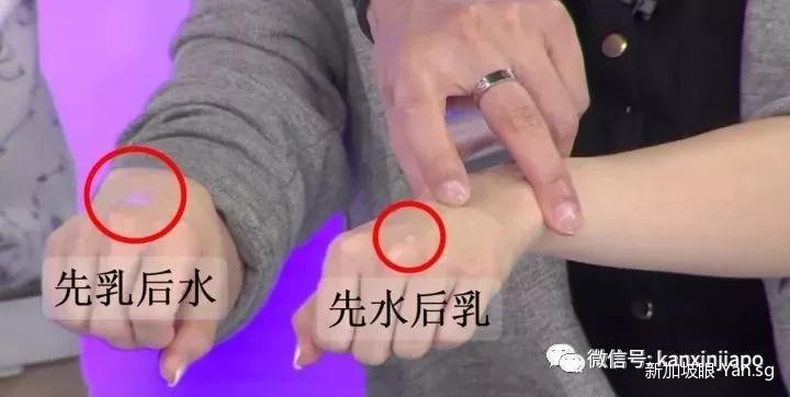 担心这是电视效果,那就让我们再来看一下在新加坡奥碧虹专柜的实测,擦渗透乳和不擦渗透乳还是有区别的: