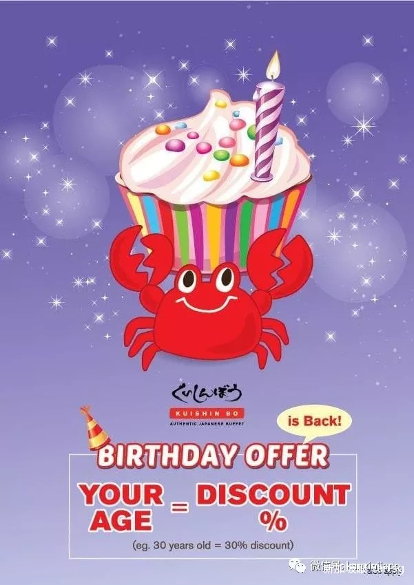 可享受相当于你年龄的折扣,优惠仅在生日月份有效,需提前3天预订
