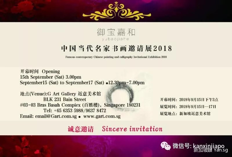 地点:G Art Gallery 近意美术馆,BLK 231 BainStreet #03-03 Bras BasahCompiex (百胜楼),Singapore 180231