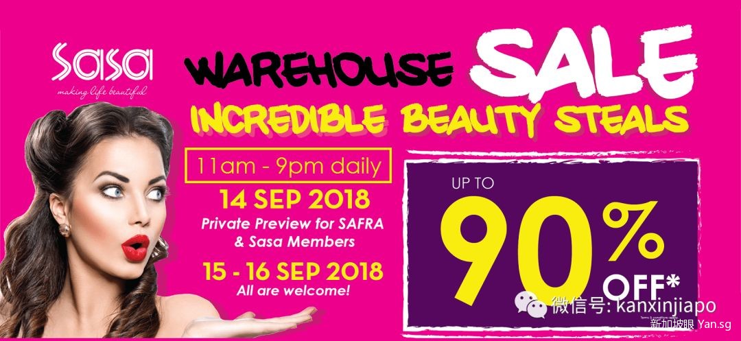 时间:9月14日向SAFRA和Sasa会员开发,9月15-16日开放,上午11点-晚上9点
