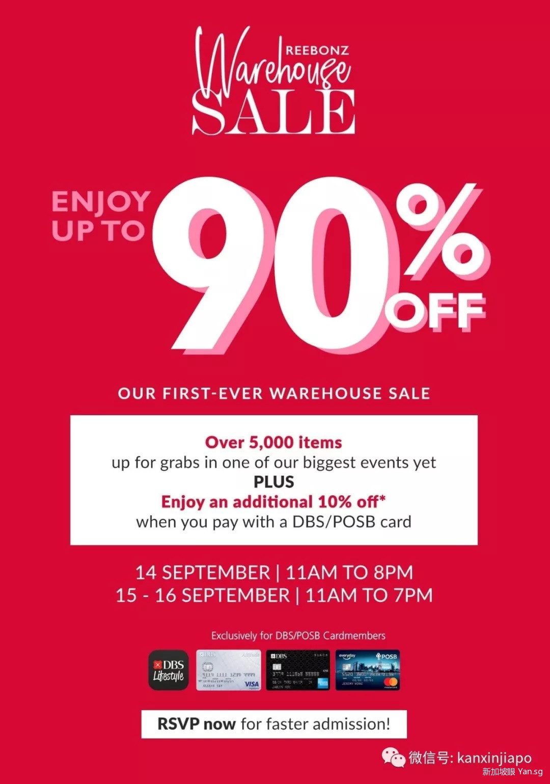 包包、鞋、衣服和配件低至1折优惠,使用DBS/POSB卡还可享受额外10%的折扣(最低消费$1200)