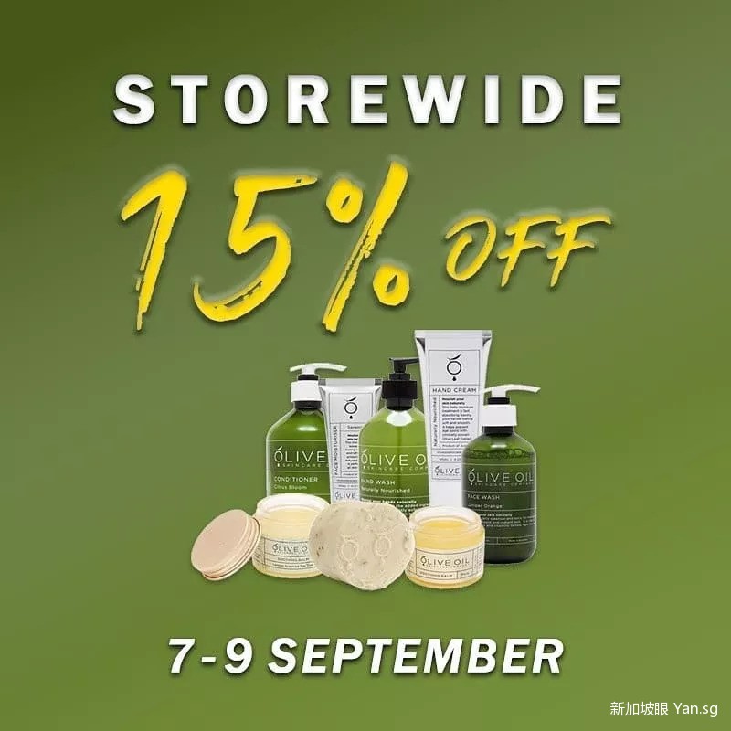 输入优惠码:sep15off,即可享有橄榄油护肤品八五折优惠!