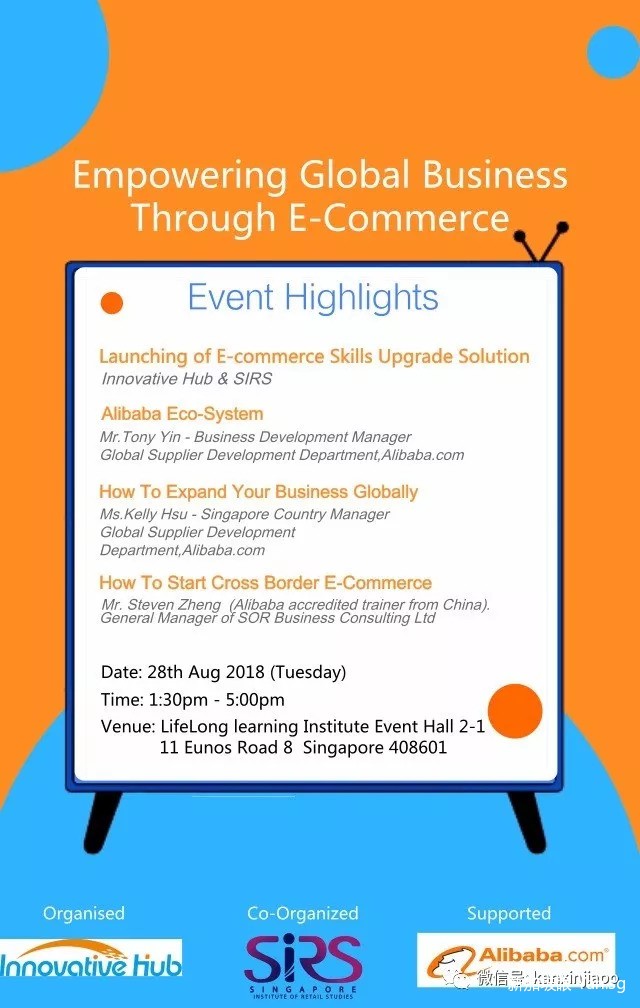 由Innovative Hub 和SIRS(新加坡零售商管理学院)联合举办的企业电商转型论坛(英文): Alibaba.com新加坡国家经理以及Alibaba.com 东南亚BD经理分享阿里巴巴最新生态以及如何开始跨境电商! 认证金牌讲师Steven分享他在平台从商13年的贸易经验!