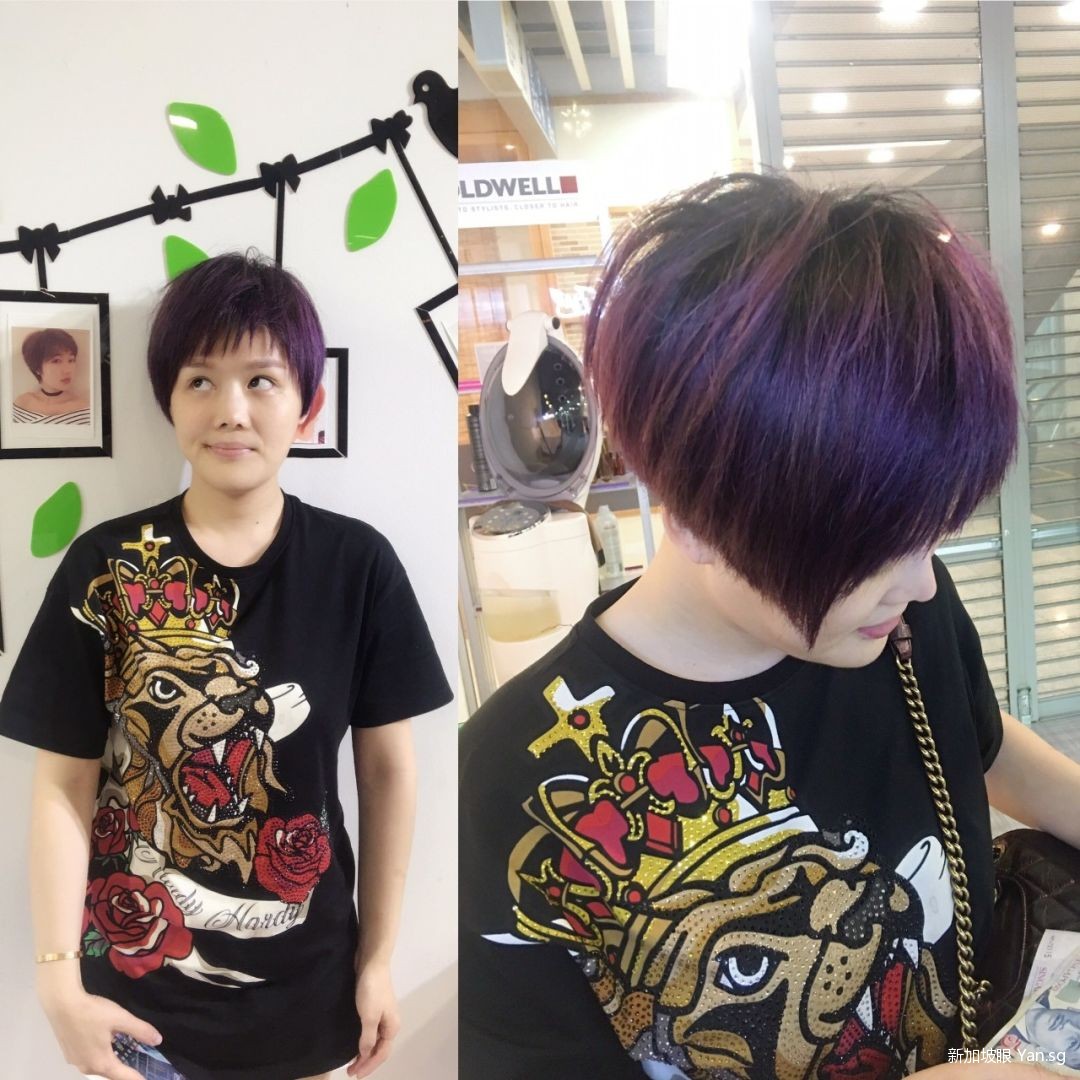 ▲在炫彩发色里,紫色相对好驾驭,时尚又显得肤色白皙;头发侧面利落的线条,看起来更加干练!