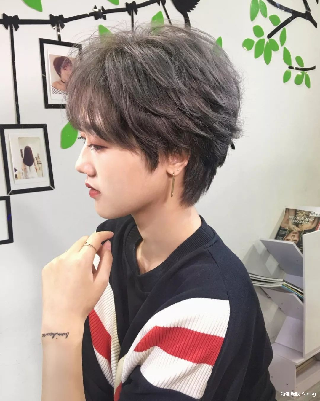 ▲说到最酷的炫彩发色,最先想到“奶奶灰”,非常有层次感的短发+灰色,如此帅气,怕是又要掰弯几个女生。