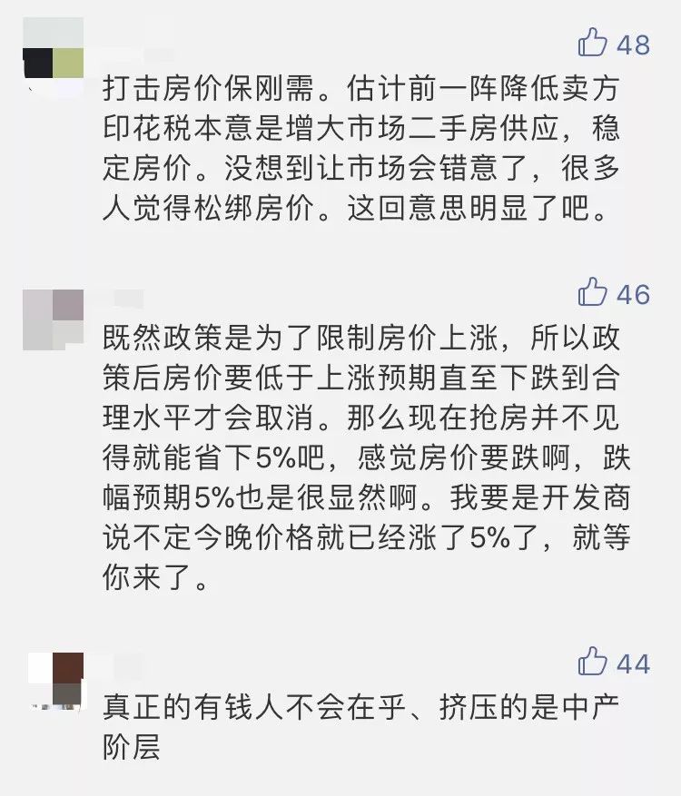 最后有可能出现的局面是,开发商发现销售效果不好,房价降低5%,刚好帮买家付掉5%的印花税,最后一买一卖,皆大欢喜!