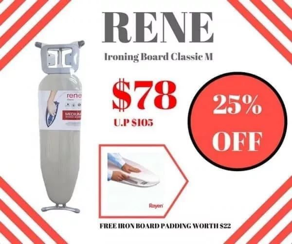 RENE熨衣板75折!低至$78(原价$105)!还额外赠送一个价值$22的熨板垫~