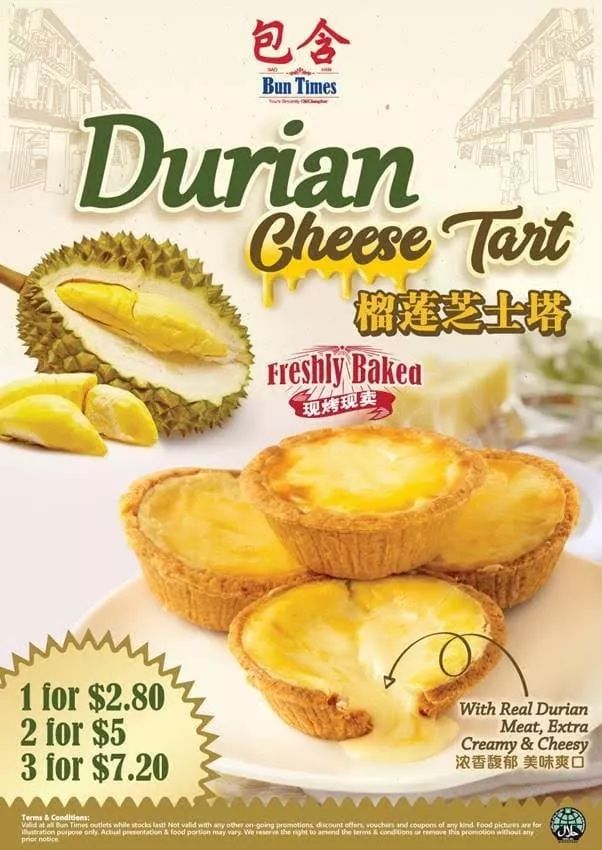 出新品!榴莲蛋挞一个$2.80,两个$5.00,三个$7.20!