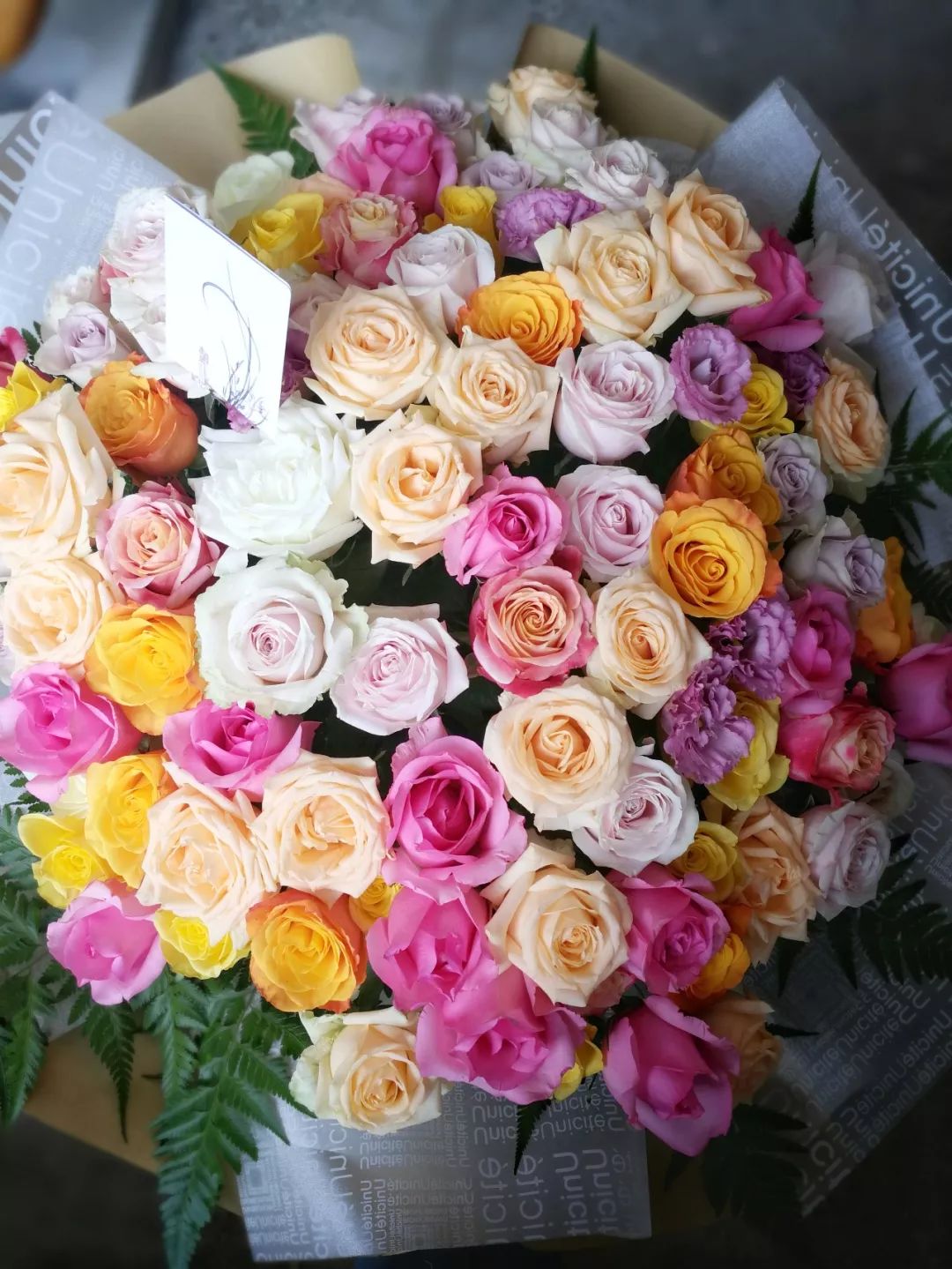 D款. 99朵肯·彩——花材:肯尼亚混色玫瑰。