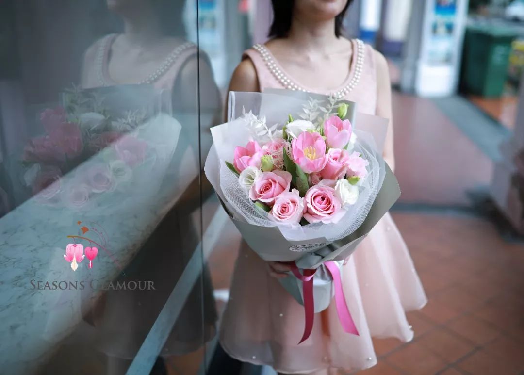 清爽又温柔感十足的石英粉,是最受女生欢迎的花束颜色。