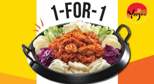 星期一到星期五全天Chicken Galbi/Bulgogi 买一送一!大家快一起去吃鸡吧!