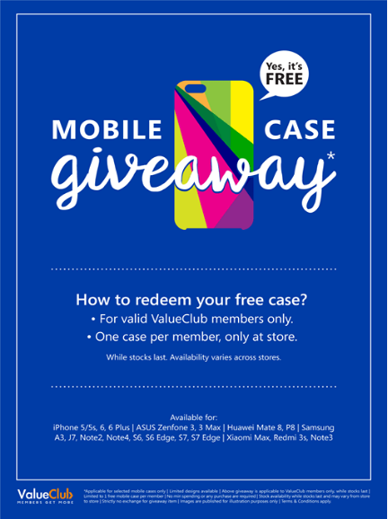 ValueClub会员免费送手机壳(手机型号:iPhone5/5s/6/6Plus、ASUS Zenfone 3/3 Max、华为Mate 8/P8、三星A3/J7/Note2/Note4/S6/S6 Edge/S7/S7Edge、小米Max/Redmi 3s/Note 3)