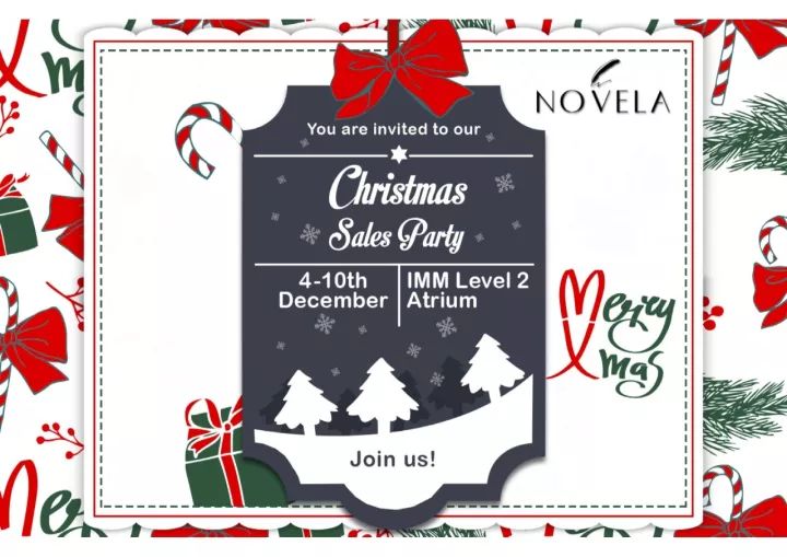 从今天开始到本周日,NOVELA@IMM每天10:30am-10:00pm在店外二楼中庭卖场举办圣诞特卖派对。全场大牌香水、护肤及彩妆低至2-5折,果真是年终囤货、挑选圣诞礼物的大好时机!
