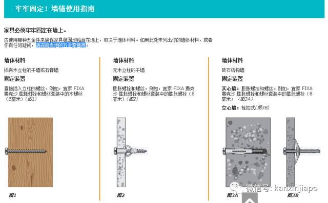 看到这里真是晕了,新加坡、中国的说明内容一致,前面明明说可以免费更换墙体固定零件的,这里又说使用与自家墙体相符的固定装置“须另购”,去哪里另购?到底是要消费者怎样呢?