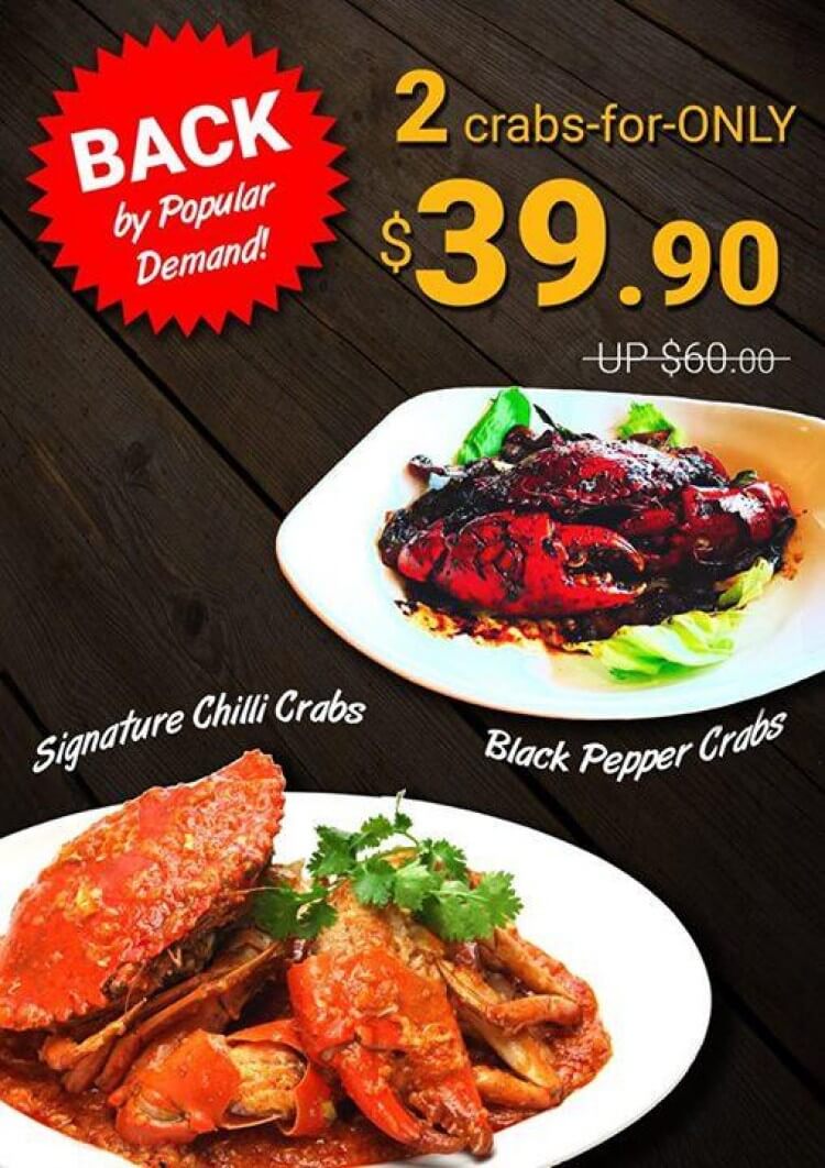 组合套餐:1份辣椒螃蟹+1份黑胡椒螃蟹仅售$39.90(原价$60.00)