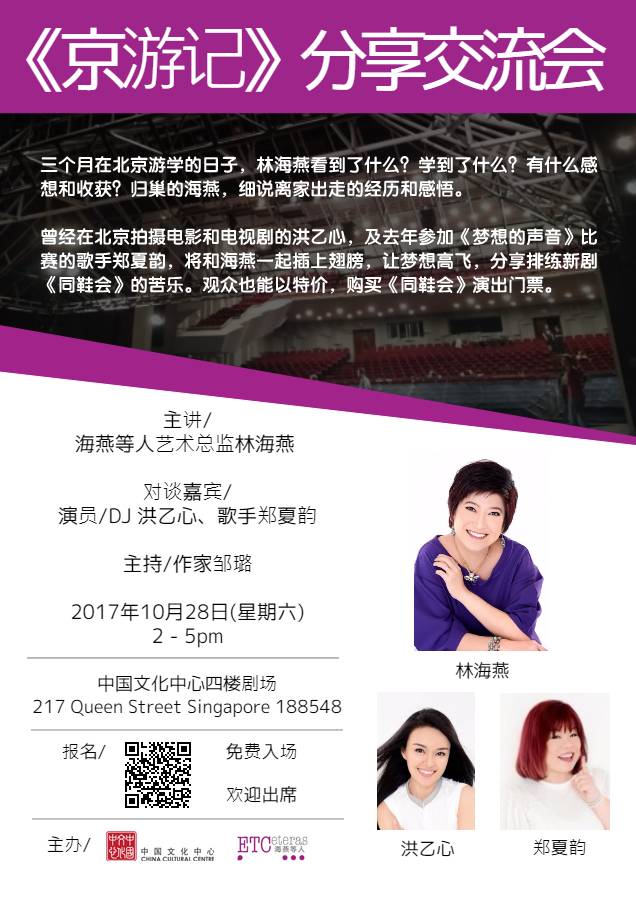 地点:中国文化中心4楼剧院,217 Queen Street(Dhoby Ghaut 地铁A出口)