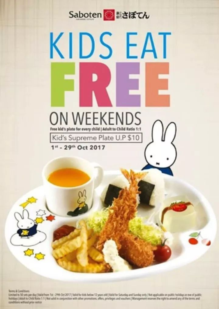 12岁以下儿童在Saboten所有门店享受免费(只限工作日,限50人)