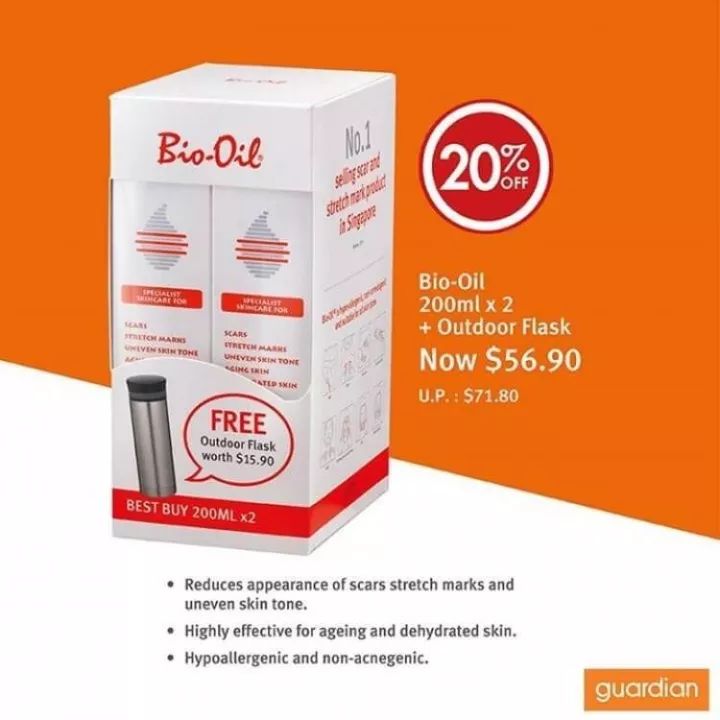 购买2瓶200ml Bio-Oil 8折优惠后还赠送室外保温瓶