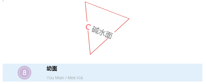 做出来的面有嚼劲、特别有弹性、非常韧,带着特有的碱味,各种新加坡菜系基本上都会使用。有人特别喜欢,有人也特别讨厌~